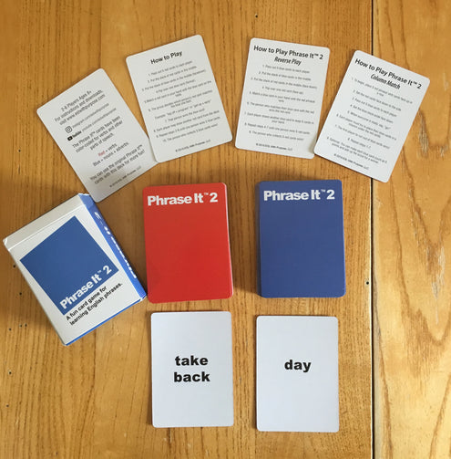 Comes with 50 more phrasal verbs + 50 common nouns in English. Works with the original Phrase It deck!